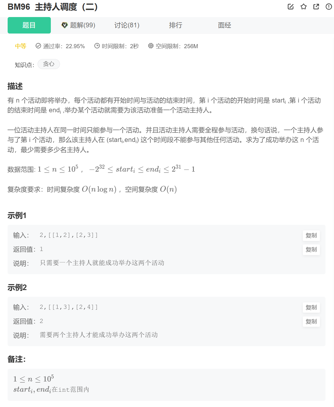 public int minmumNumberOfHost (int n, int[][] startEnd) {