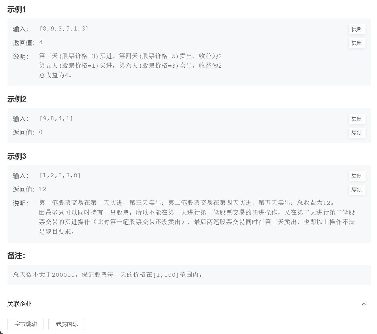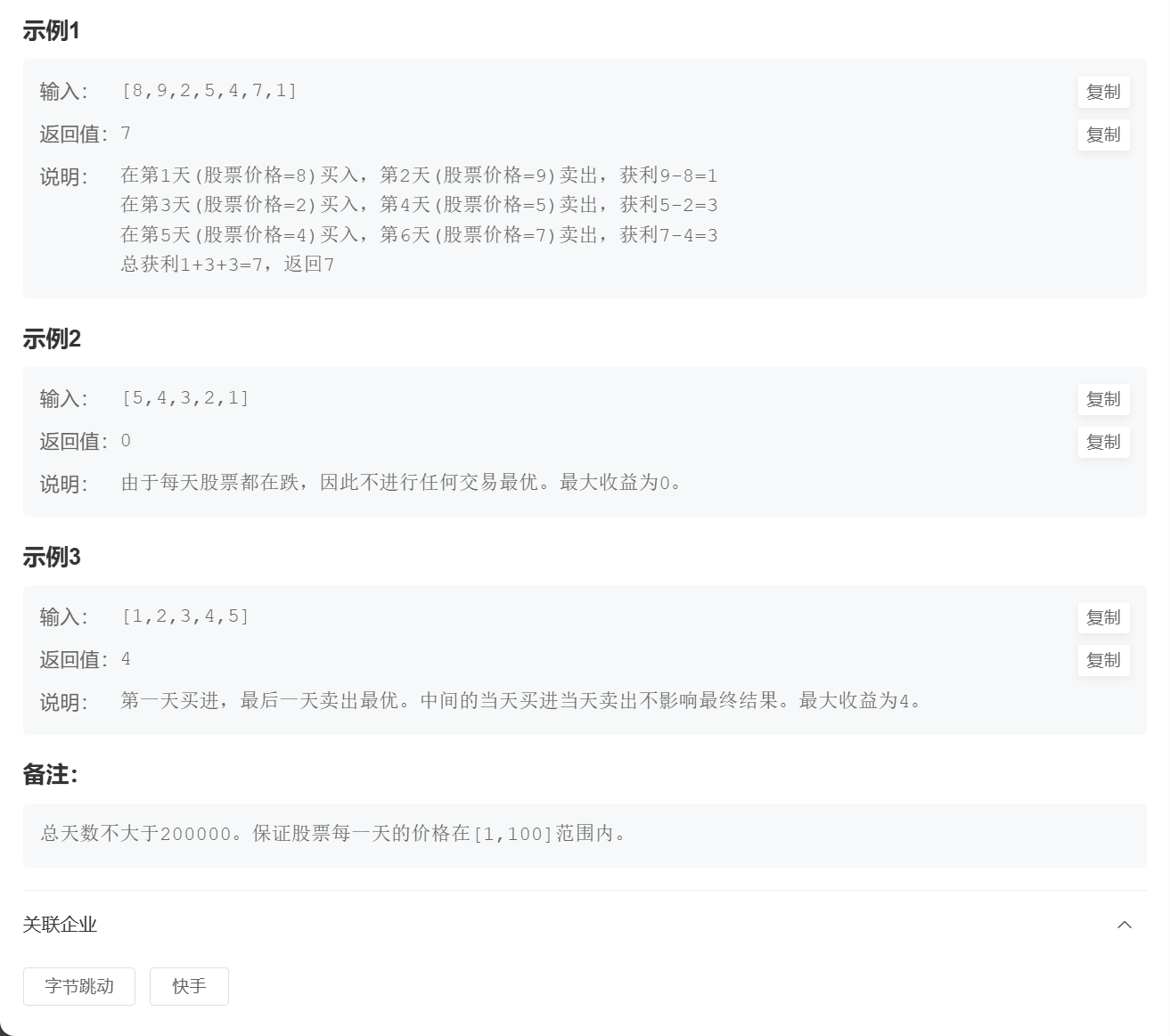 和上面的类型(一)不一样的是,这题可以进行多次交易,代码上的体现就是: