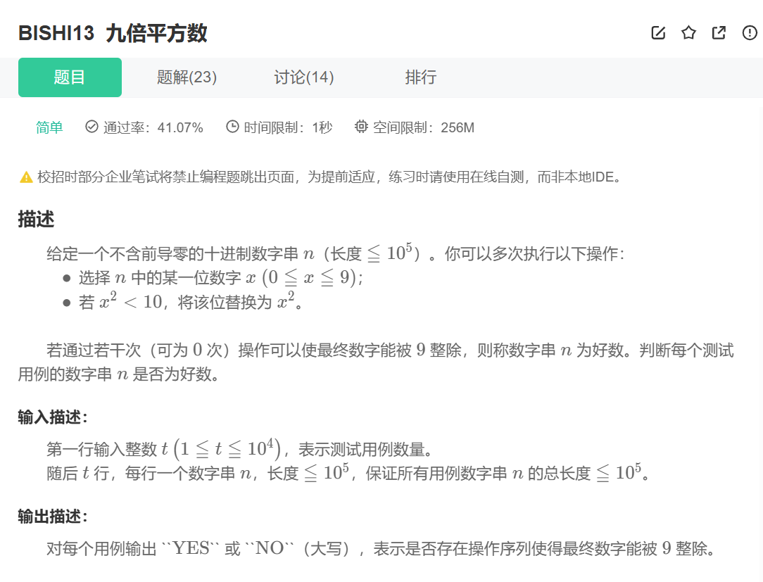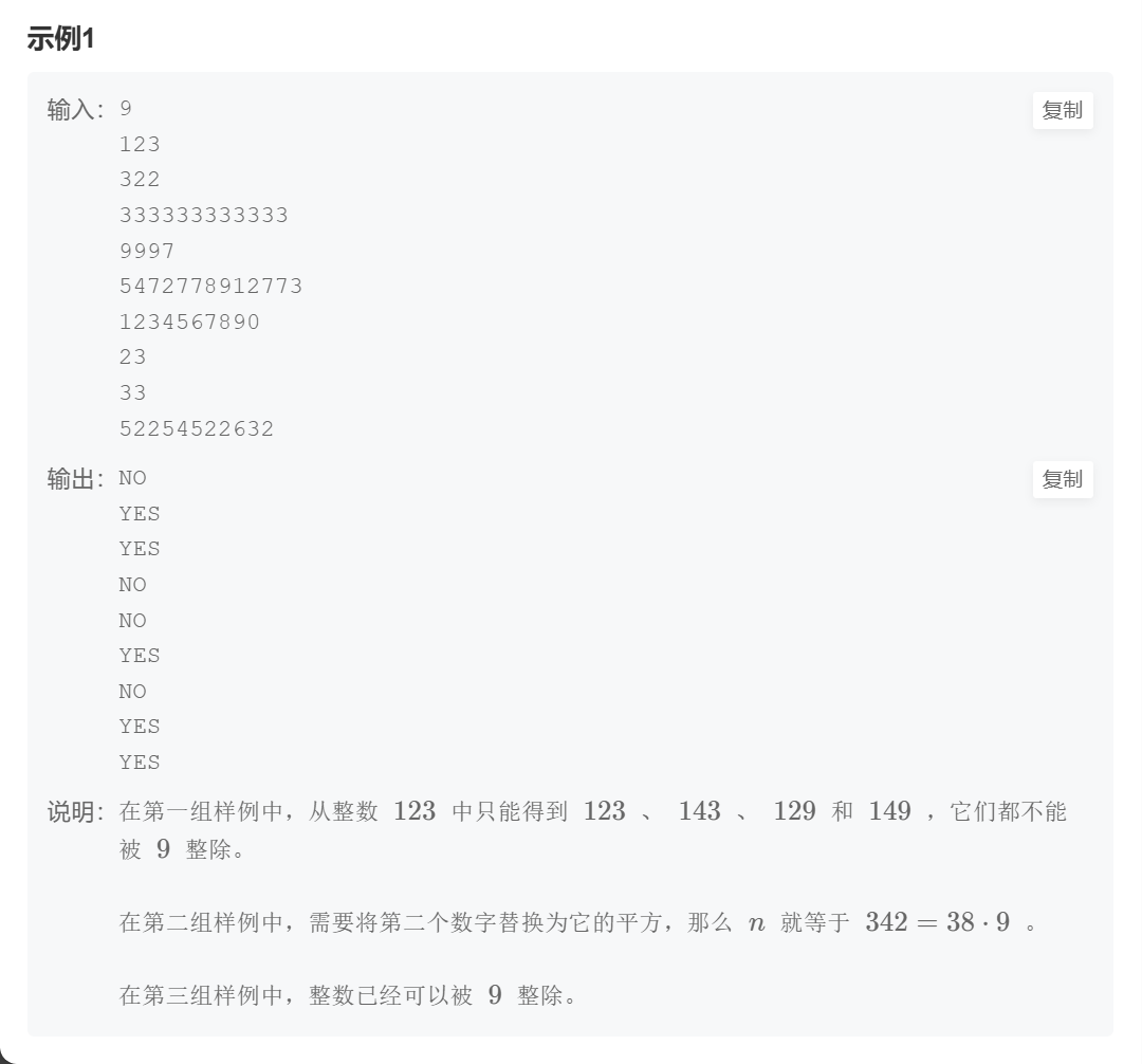 否则,需要通过修改k个2和m个3,让增量总和k*2 + m*6和 (9 - rest) %9相等。